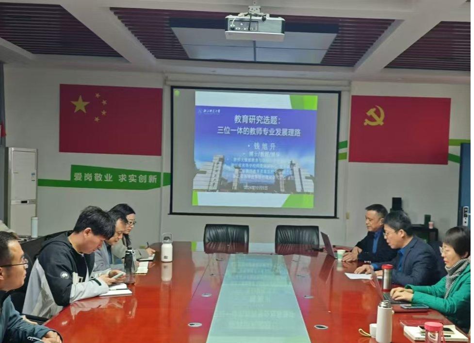 12月5日下午,浙江师范大学博士生导师钱旭升教授应邀为我院师生做了题为“教育研究选题:三位一体的专业发展理路”的专题报告。会议由郭利强院长主持,全体教师和2024级研究生聆听了报告。