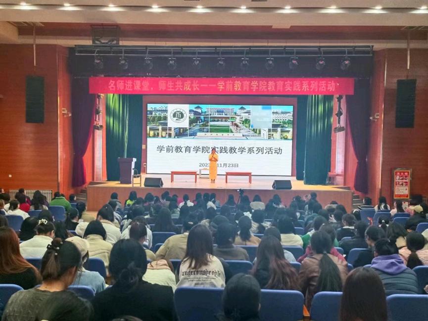 为进一步提升学前教育专业人才培养质量,加强幼儿园领域教育活动设计与实践能力的培养,11月23日,洛阳师范学院学前教育学院特邀洛阳市直机关第一幼儿园和洛阳市实验幼儿园,联合举办了幼儿园优质课观摩研讨活动。学前教育学院党委书记褚卫东、院长马锦华和副院长靳君,市直一幼李亚晓园长、实验幼儿园王利晓副园长、洛阳师范学院附属幼儿园张惠园长,以及各幼儿园教师代表出席本次活动,我院全体专业教师和2021级本科、2023级专升本学生参加见习活动。马锦华院长首先对两所幼儿园对我院人才培养的支持表示诚挚欢迎,并指出此次活动对理论落地和实践提升具有双向共赢意义,将深度建设高校、幼儿园协同育人平台,助力豫西学前教育高质量发展。