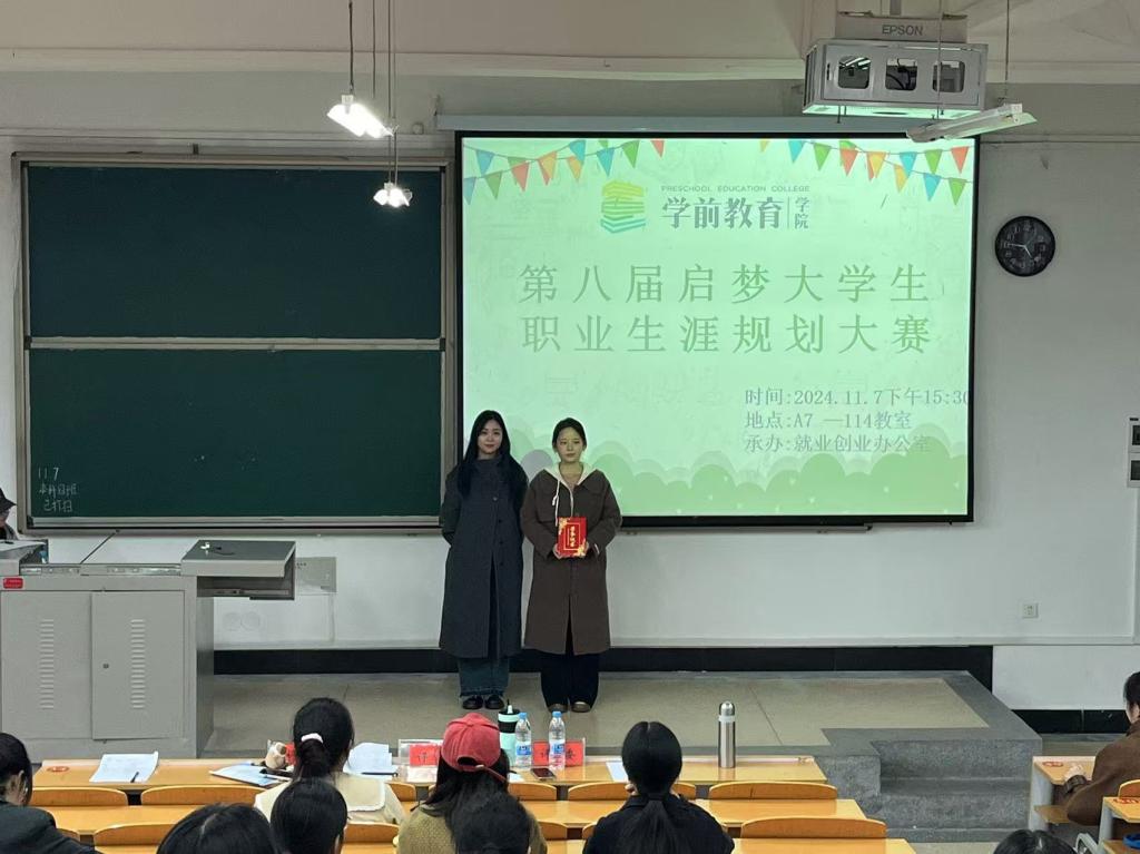 11月7日下午,学前教育学院第八届启梦大学生职业生涯规划大赛决赛在A7-114举办。育人导师任威豪、朱柏帆、王俊娣担任评委老师,经过前期选拔,共24名选手参加现场决赛。比赛由学院就业创业办公室副主任马珺怡主持。