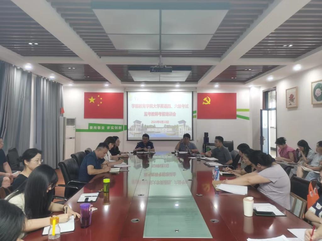 为确保大学英语四六级考试工作规范、有序、顺利进行,6月13日,学前教育学院在A7-504召开大学英语四六级考试教师监考培训会。学院教学副院长靳君主持,全体监考老师参加。