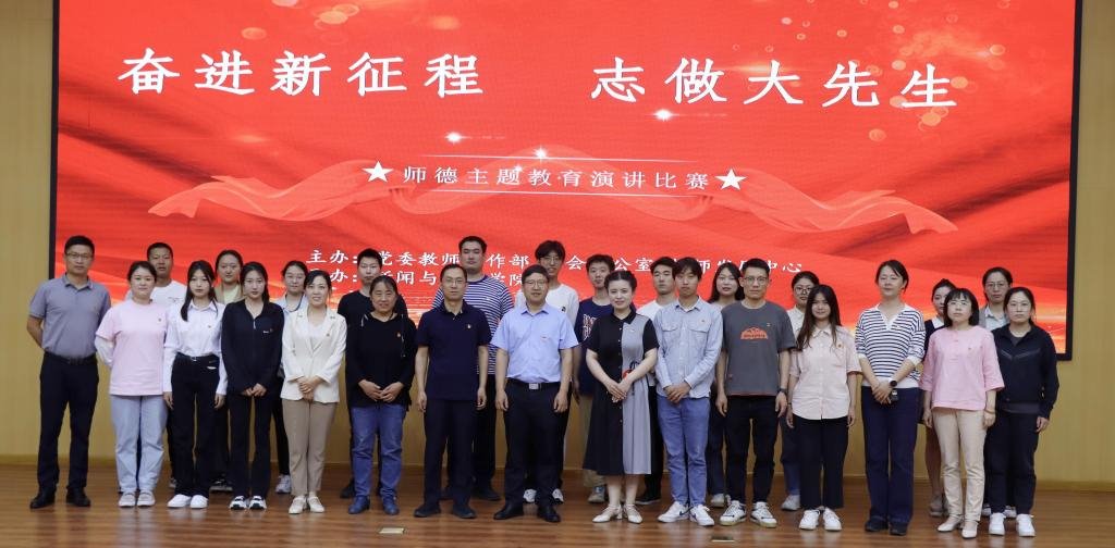 为扎实推进学习贯彻习近平新时代中国特色社会主义思想主题教育,进一步加强师德师风建设,6月5日下午在成均楼B106会议室,人事处党支部和数学与应用数学第二党支部“手拉手”组织开展“奋进新征程 志做大先生”师德主题教育演讲比赛观摩党日活动,教育引导广大党员坚守“为党育人、为国育才”的使命担当,争做“四有”好老师,当好“四个引路人”,助力学校高质量发展。