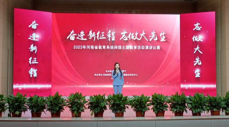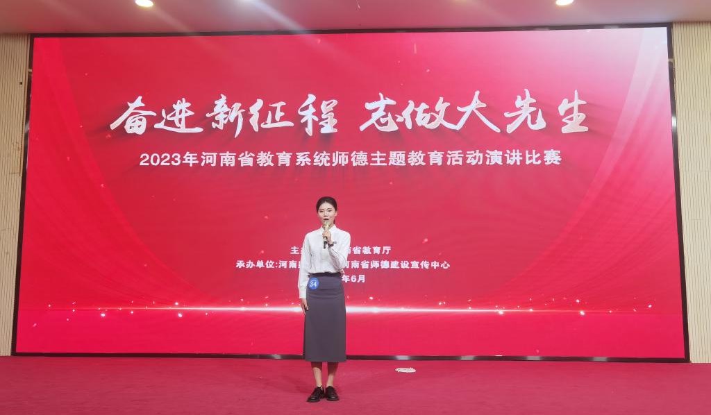 近日,由河南省教育厅主办的全省教育系统“奋进新征程,志做大先生”师德主题教育演讲比赛决赛举行,我校新闻与传播学院教师冯夏和外国语学院学生葛思奇分别荣获教师组和学生组演讲比赛决赛一等奖的好成绩。