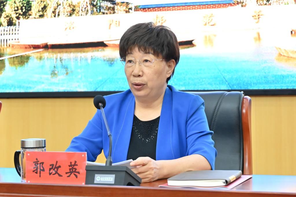 郭改英围绕“履行第一责任人责任情况”“推进学校事业发展情况”“履行经济责任情况”三方面作任职期间述职报告。