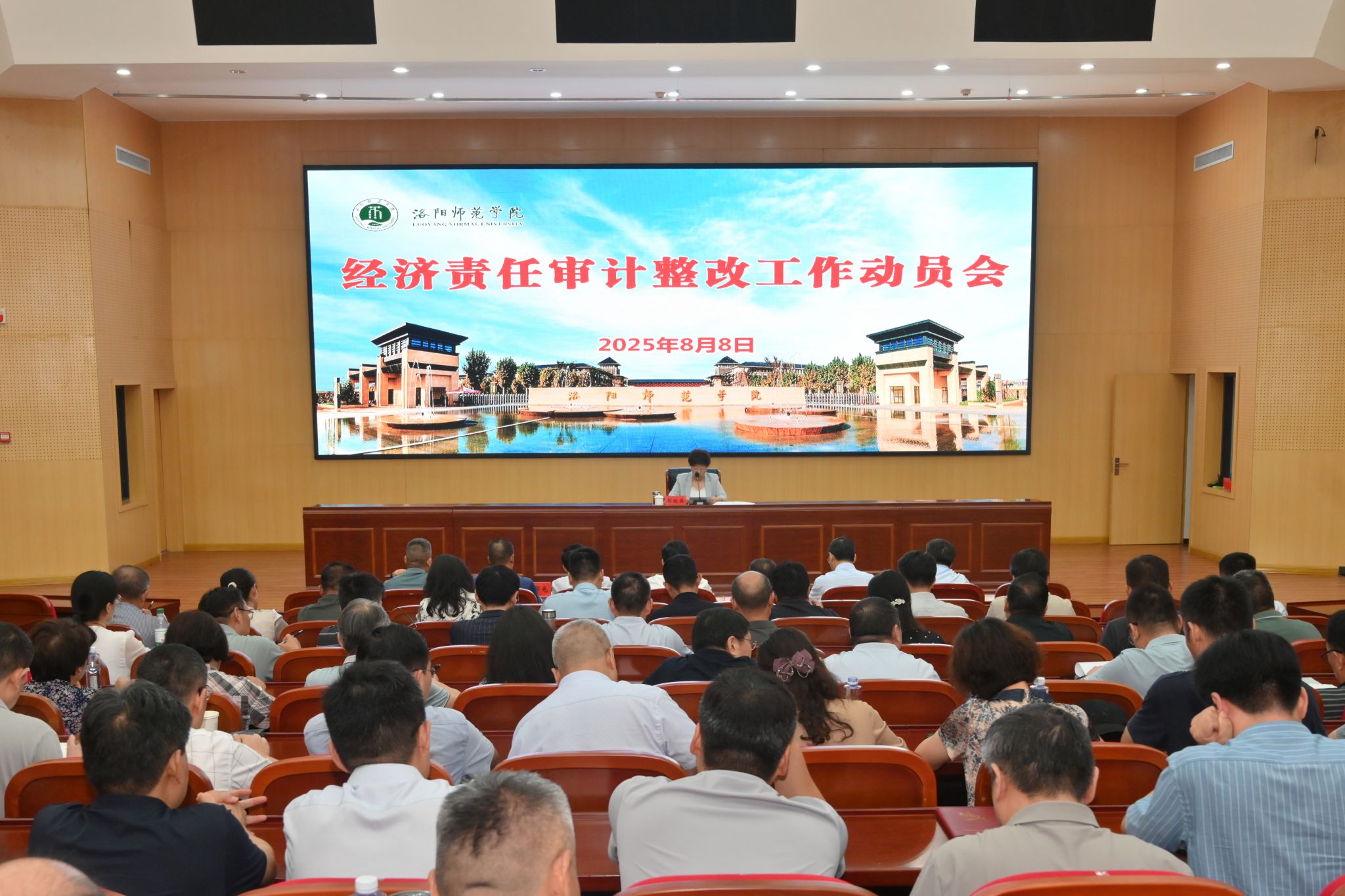 8月8日上午,学校在成均楼B106报告厅召开经济责任审计整改工作动员会。校党委书记郭改英出席会议并讲话,在校校领导、全体中层干部正职参加会议。