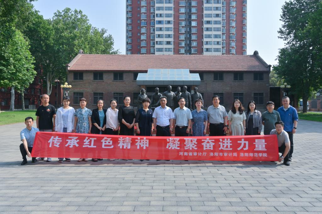 为推动深入贯彻中央八项规定精神学习教育走深走实,6月13日上午,省审计厅赴洛阳师范学院经济责任审计组临时党支部联合洛阳市审计局和我校党政办党支部、审计处党支部开展“传承红色精神 凝聚奋进力量”主题党日活动,共同参观了“不忘初心、信念永恒——洛耐职工怀念习仲勋同志展览” 、习仲勋在洛矿主题展览、焦裕禄事迹展览馆。省审计厅党组成员、副厅长张建军,洛阳市审计局党组成员、副局长李永,校党委书记郭改英,副校长曹玉涛以普通党员身份参加了所在党支部主题党日活动。