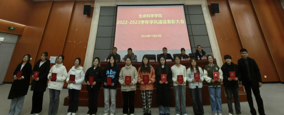 表彰大会在热烈的掌声中拉开序幕。首先,王育娜副院长宣读了《生命科学学院关于表彰2022-2023学年学风建设先进班集体与先进个人的决定》,学院领导为获奖学生颁发荣誉证书。优秀学生代表田欣怡在发言中分享了自己的学习经验和感受。赵冬生处长向受表彰的先进集体和优秀个人表示热烈祝贺,对我院学生在学风建设中展现出的奋发向上精神风貌给予高度评价。陈冰书记为本次表彰大会做总结,希望同学们继续努力为我院营造一个良好的学习环境,让我们的学风建设取得更大的成就。