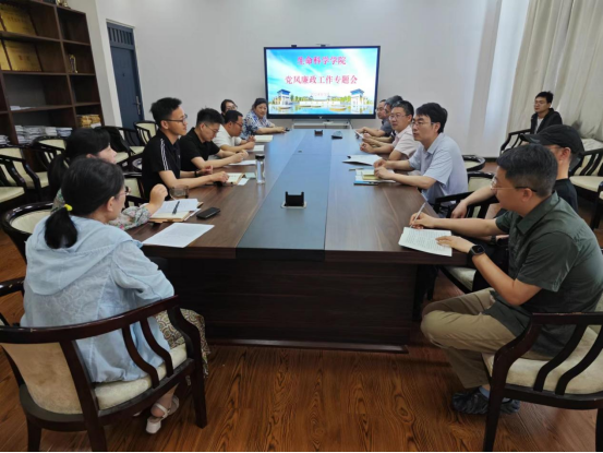 为加强党风廉政建设,提升学院党员干部的廉洁自律意识,我院于2024年5月13日在A16-402会议室召开了党风廉政工作专题会,由陈冰书记主持,学院党委委员、党支部书记、系主任、教研室主任参加会议。