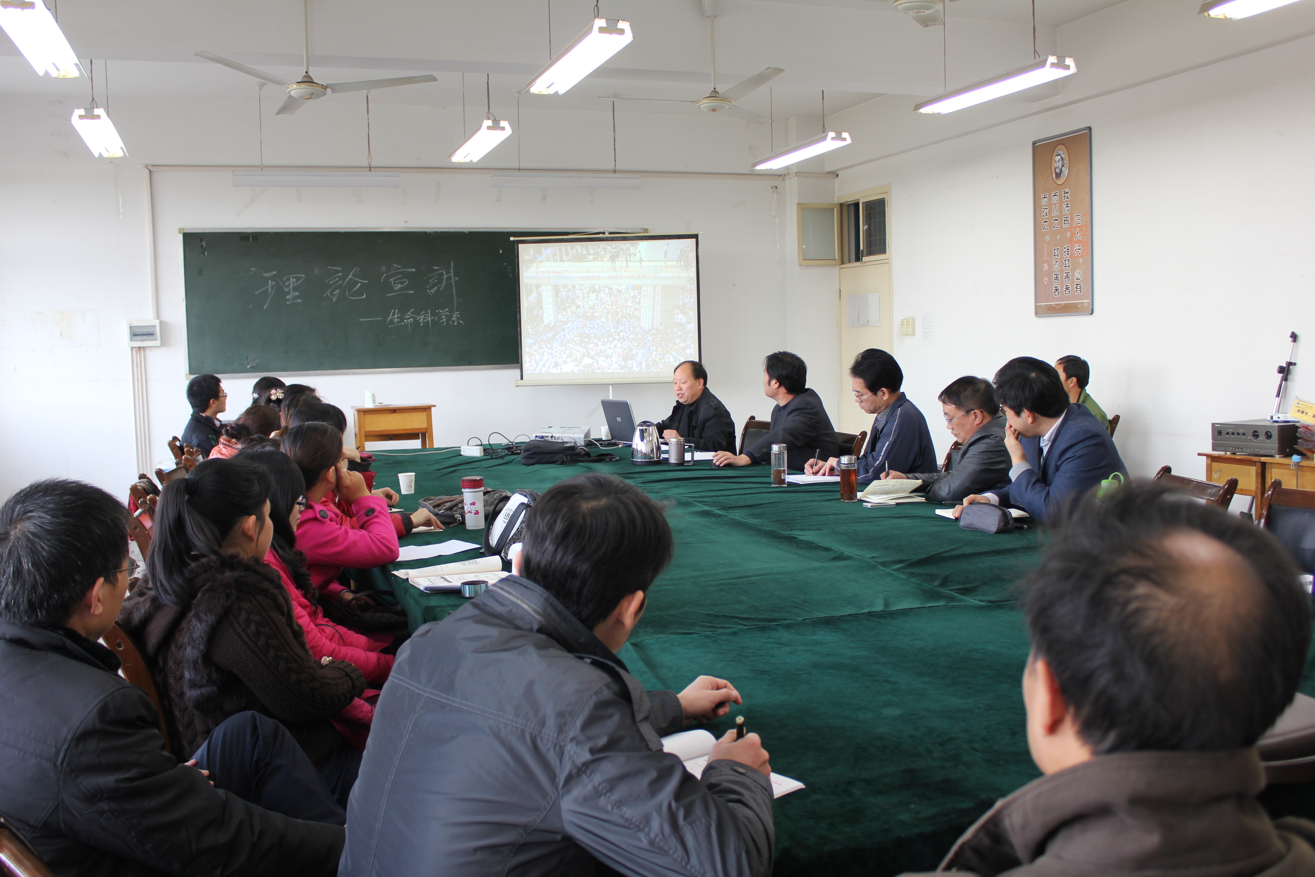 11月14日下午,由校党委宣传部主办、生命科学系承办的理论宣讲活动在西区逸夫楼A305会议室顺利举行。商学院党总支书记高志卿为生命科学系全体教师带来了一场题为“改进工作作风—做比说更重要”的精彩讲座。生命科学系党总支书记张建超、主任杨学义、副主任陈万光、副主任押辉远、党总支副书记曹嘉以及该系各任课教师一起参加了此次宣讲活动。