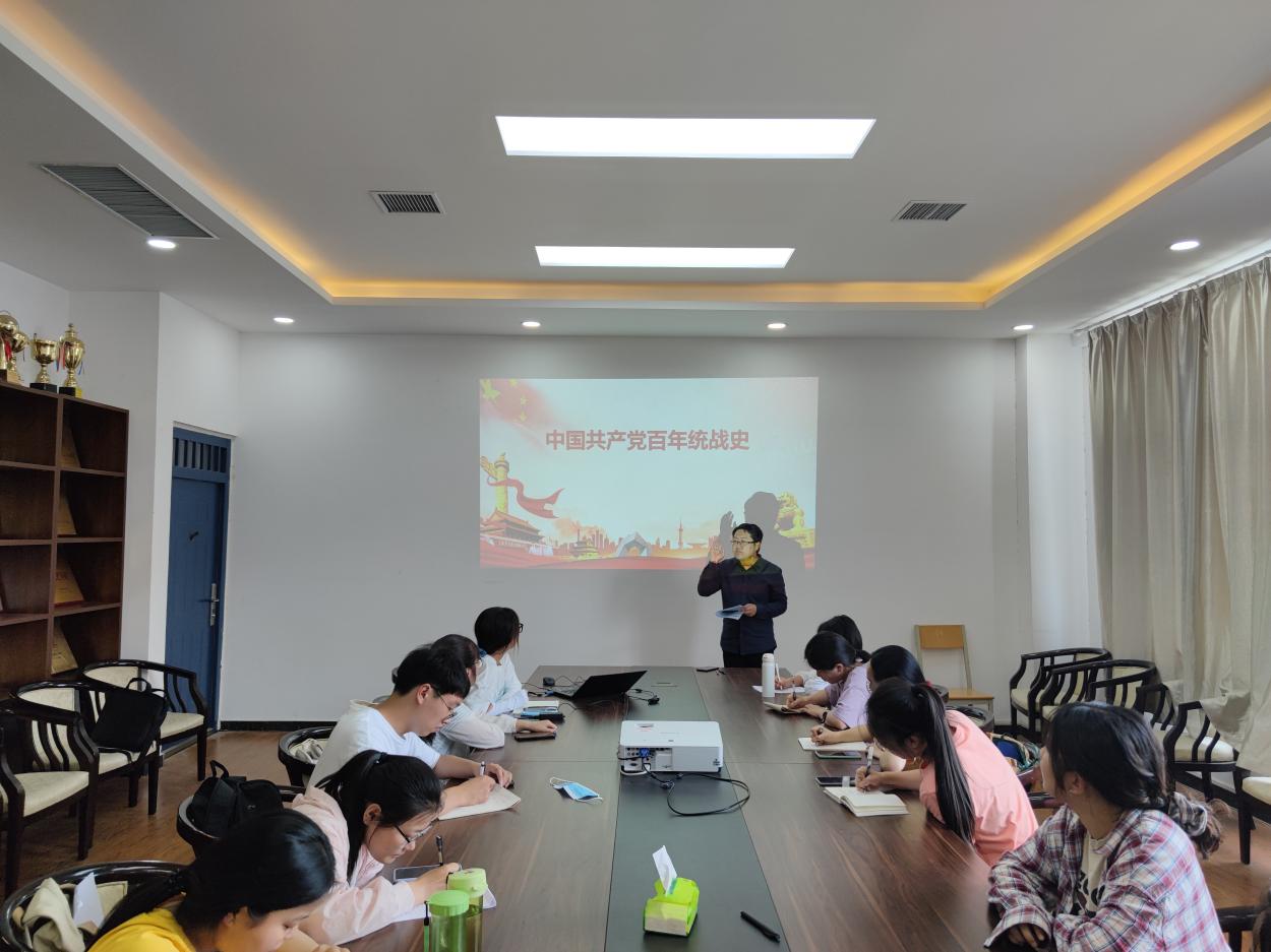 为庆祝中国共产党成立一百周年,激发广大学子对党和国家的热爱,5月12日中午,学院团委副书记鲍晨阳老师在生科楼306给青年学生讲解《中国共产党百年统战史》。
