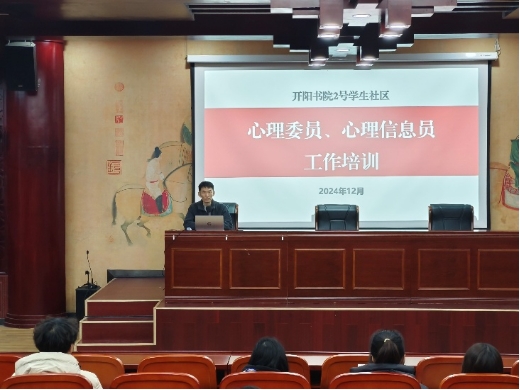 为了进一步提升心理委员、心理信息员的专业素养和服务能力,12月5日下午,开阳书院2号学生社区于G5-102开展心理委员、心理信息员工作培训。书院社区心理健康教育中心副主任贾尚卿主讲。