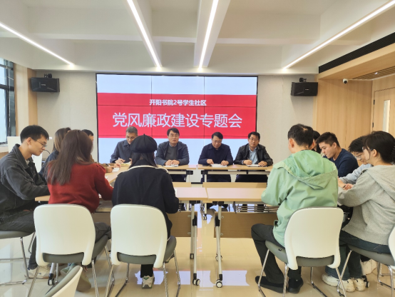 为落实全面从严治党要求,加强党风廉政建设,提高党员廉洁自律意识,11月7日,开阳书院2号学生社区于二楼会议室召开党风廉政建设专题会议,由书院社区党委书记陈冰主持,书院社区科级以上干部参会。