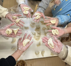 活动现场,热闹非凡。诱人的馅料早已准备就绪。师生们挽起衣袖围聚在桌旁,分工合作,密切配合。从揉面、擀皮到包馅、拢合,相互切磋包饺子技巧,分享着各自的经验。不久,各式各样的饺子便摆满了餐盘,有精致小巧的柳叶饺、有个大饱满的东北饺。饺子中还混入了“幸运饺子”,幸运饺子馅中放有象征开心、甜蜜的开心果和蜜枣等食物,吃到“幸运饺子”者即可获得精美纪念品一份。饺子在锅里翻滚,冒出腾腾热气。师生们共同品尝了亲手制作的饺子,讲述了冬至的历史渊源与文化内涵,脸上洋溢着幸福与欢乐。