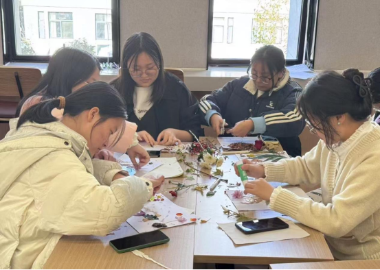开阳书院2号学生社区2412团支部成员利用收集到的落叶拼画