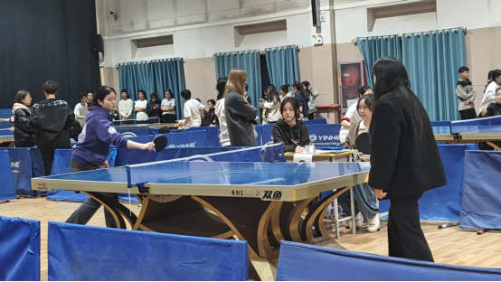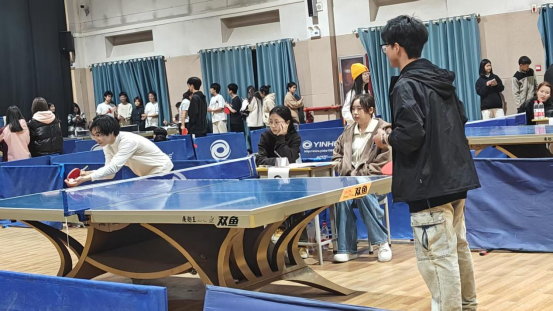 比赛采用五局三胜制规则,参赛选手按照顺序陆续上场。比赛现场,我院选手们全神贯注,挥舞着球拍,小小的乒乓球在球桌上来回穿梭。无论比分落后还是领先,他们始终保持着高昂的斗志和坚定的信心,充分展现了生科学子的拼搏进取精神。每一个扣杀、旋球都让观众们惊叹不已,赢得阵阵掌声。