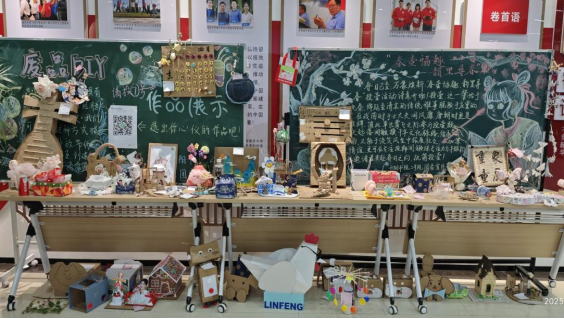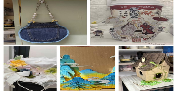 同学们充分发挥想象力,将废弃纸箱、塑料瓶、易拉罐等日常废品,通过巧手改造变身为实用工艺品。有的将饮料瓶制作成精致笔筒,有的用快递纸箱搭建迷你书架,更有同学将废旧布料缝制成时尚收纳袋。所有作品收集后在书院社区大厅展出,琳琅满目的创意作品吸引了师生驻足观赏。同学们纷纷表示:“这些作品不仅展现了同学们的巧思妙想,更传递了绿色环保的生活理念。”