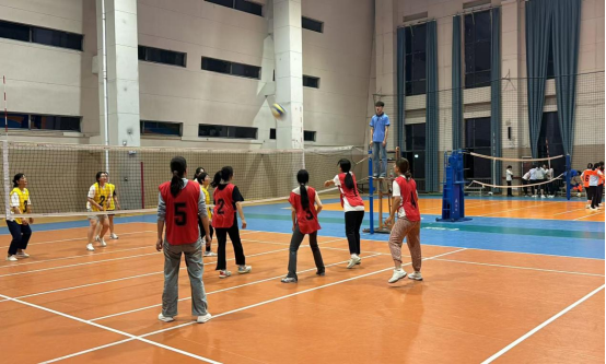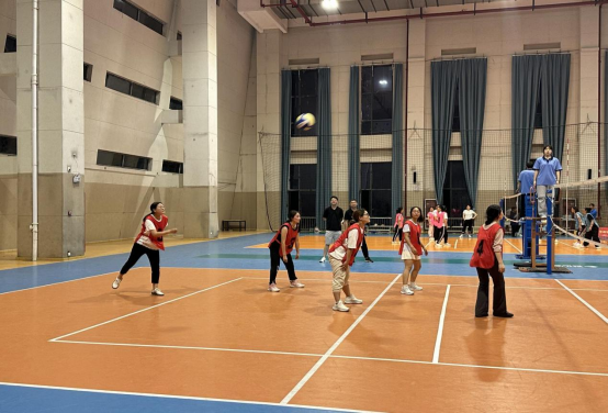 赛场上,平日严谨治学的教师们展现出别样风采。她们目光专注,脚步灵活,每一次精准的传球都传递着信任,每一次轻巧的垫球都凝聚着智慧,每一次奋力的扣杀都迸发着力量。纵使汗珠滚落,她们依然笑容灿烂,为救起一个险球而全力飞扑,为拿下一分而击掌相庆。场边助威声此起彼伏,同事们的欢呼、掌声与喝彩汇聚成一片欢乐的海洋。整个赛场洋溢着拼搏的激情与集体的温暖,成为春日校园中一道靓丽的风景线。
