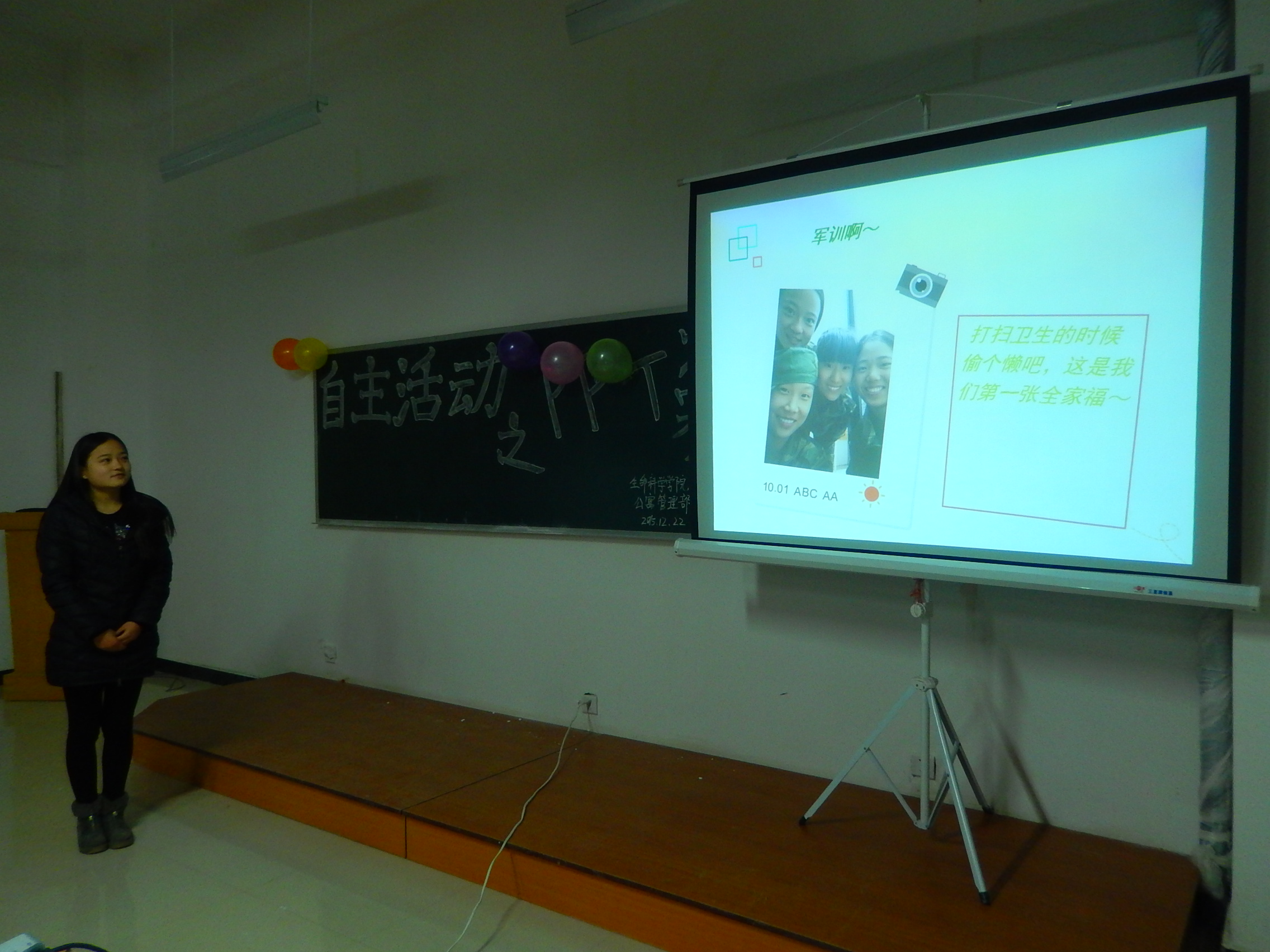 12月22日晚,由生命科学学院公寓管理部主办的自由活动之PPT大赛在该院教学楼阶梯教室成功举办。生命科学学院自律会主席兼公寓管理部部长王雅萱、就业服务团团长宋金路等作为评委莅临此次活动。