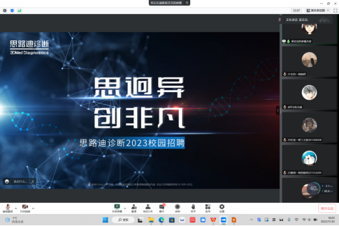 招聘会上,奚女士对招聘单位的概况、发展前景、岗位要求等进行了详细介绍,并邀请肿瘤事业部陈春竹女士,对公司的企业文化,进行进一步介绍,思路迪诊断业务覆盖肿瘤和感染两大领域,2019年分拆出了诊断和新药两个独立发展的品牌,形成了以“肿瘤早期诊断+肿瘤伴随诊断+感染诊断”为核心的三大业务板块。最后阶段,学生向杨女士咨询就业实习的相关问题,奚女士做出了详细解答。