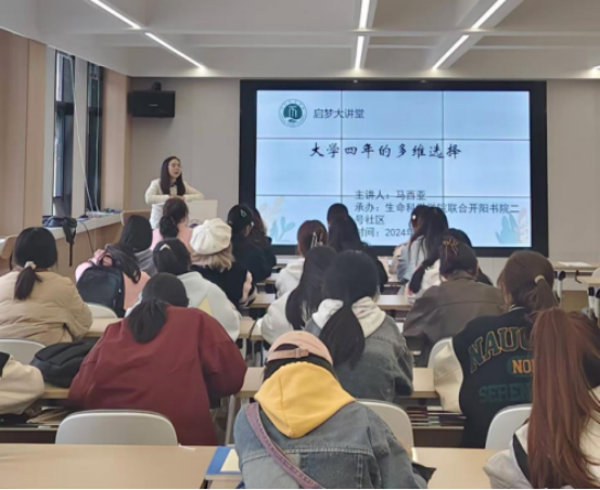 为帮助同学们更好地了解大学学业规划,明确未来的发展方向,提升自身综合素质,10月28日中午,由生命科学学院、开阳书院2号学生社区承办的启梦大讲堂系列讲座在书院社区会议室开展。本次讲座以“大学四年的多维选择”为主题,由洛阳师范学院生命科学学院教师马西亚主讲。