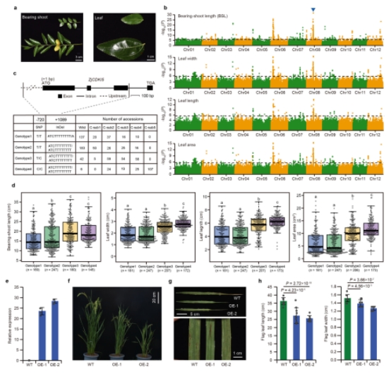 图1.枣吊长及叶片大小候选基因的筛选及转基因验证。