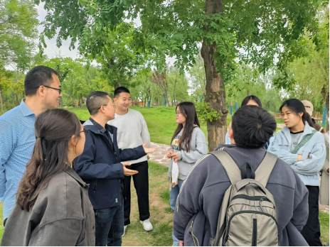 在黄河湿地生态公园,学院领导班子、中层干部和教师代表以习近平新时代中国特色社会主义思想为指导,围绕野外科学观测研究站建设和科研进展情况,以及黄河流域生态环境保护和高质量发展进行了研讨交流,结合湿地现状,认真探讨了如何保护当地的乔木、灌木和野生动物的生存环境。学院教师党员和学生还在湿地公园开展党员志愿服务活动,为当地群众进行环境保护的科普宣传,在湿地公园捡拾垃圾、清洁环境。