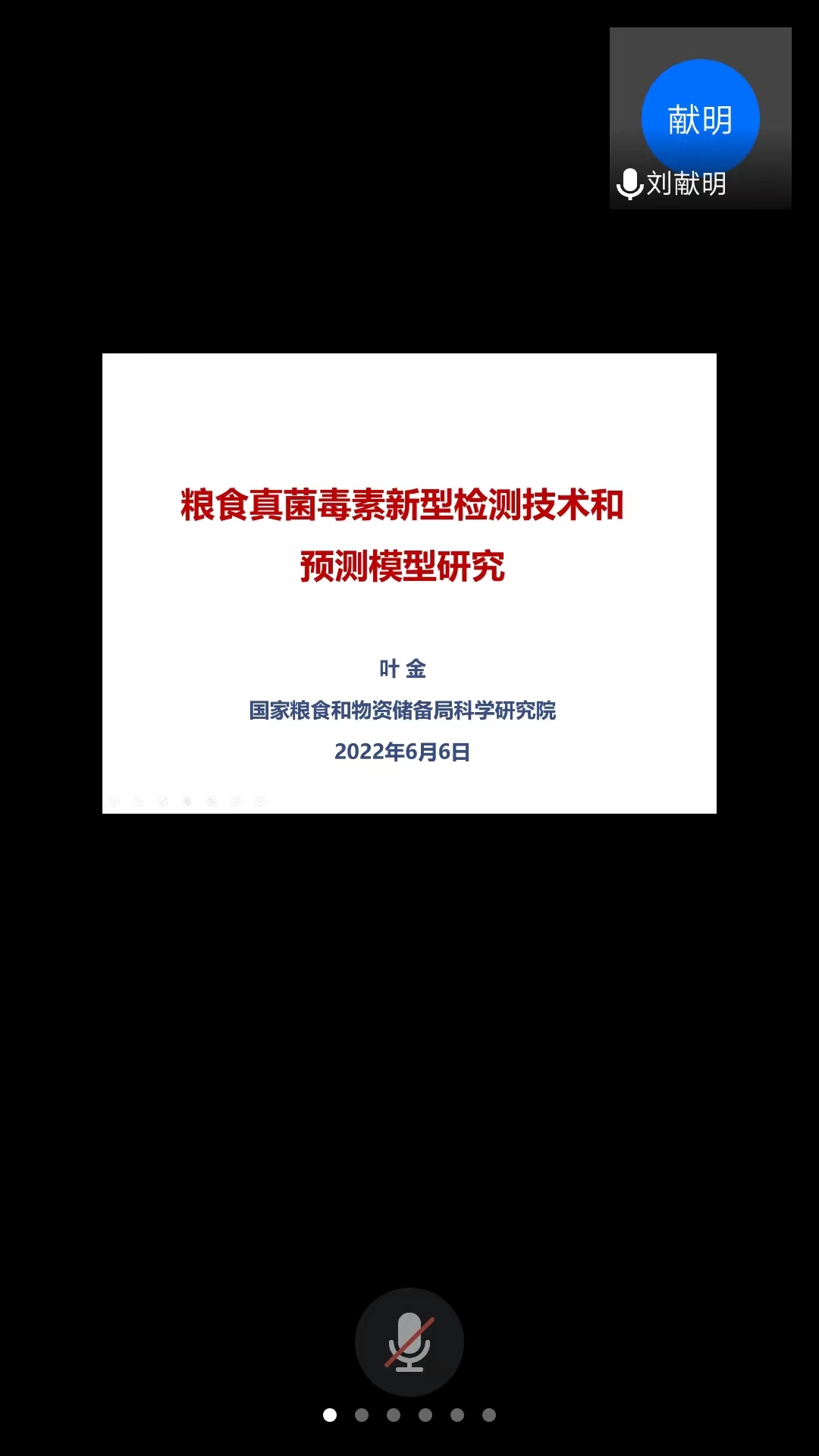 学院新闻为促进学术交流,6月6日15:00,国家粮食和物资储备局科学研究院粮油质量安全研究所副研究员叶金博士受邀给我院教师在线上做学术报告。我院教师及生命科学学院、化学化工学院部分教师参加了本次报告会,报告会由院长刘献明主持。叶金博士长期从事粮食真菌毒素检测、监测和预警研究。现任国际标准化组织谷物和豆类分委会(ISO/TC 34/SC 4)真菌毒素工作组专家,主持国家自然科学基金、国家重点研发项目子课题6项,近五年在Analytical Chemistry,Food Chemistry,Food Control,Toxins等国内外期刊发表研究论文36篇。