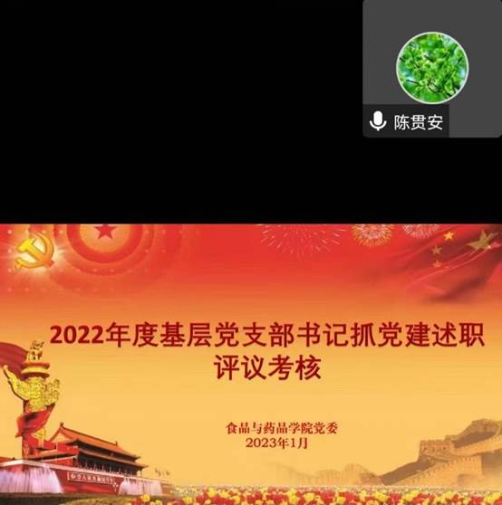 学院新闻2023年1月12日,食品与药品学院在线上召开2022年度基层党支部书记抓党建述职评议考核会,学院师生党员以及群众代表参加会议。会议由学院党委副书记蔡云改同志主持。