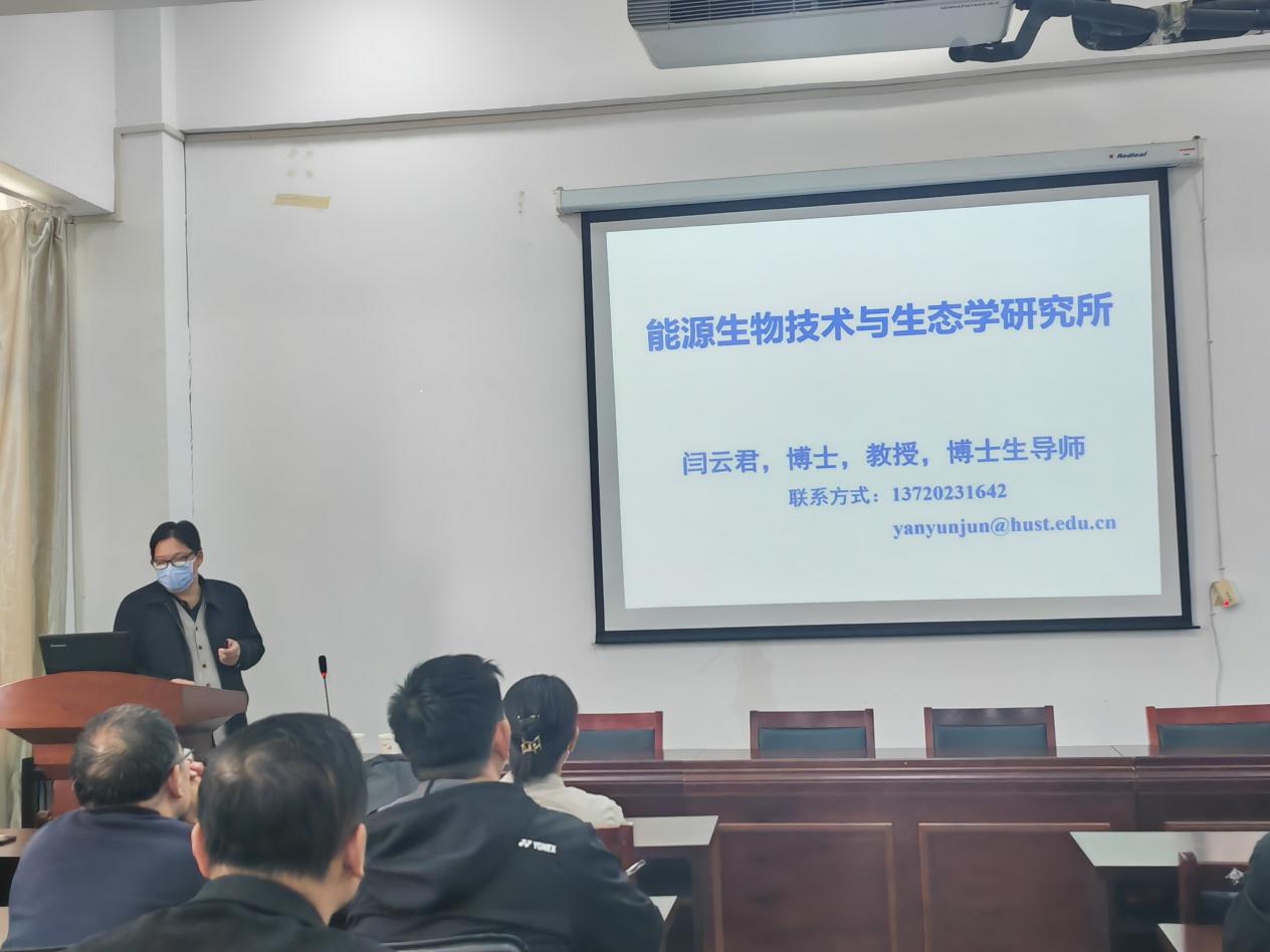 闫教授从能源生物技术与生态学研究所、合成生物学与生物材料以及课题组新兴战略发展方向等三个方面进行阐释,使在座的师生意识到做科研不能追求短平快,而要找到一个明确的研究问题脚踏实地进行钻研;另外做科研要发散思维,不能仅仅局限于自己所学的领域,而要多学科融合,找到创新点和突破点。报告结束后,闫教授对老师提出的问题进行了详细的解答和探讨。