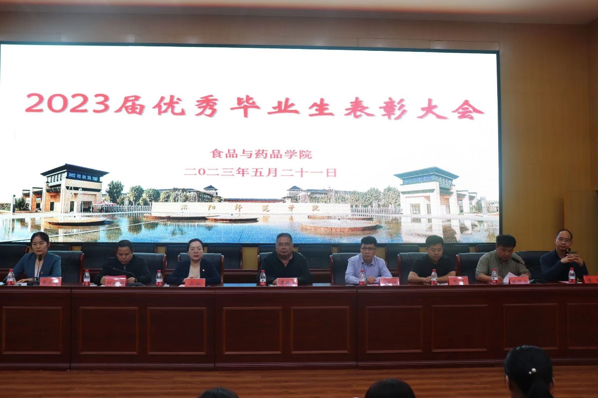 感恩青春奋斗,憧憬美好未来。 5月21日上午9点,食品与药品学院2023届优秀毕业生表彰大会在成均楼B-106会议室举行。校党委副书记李晓彦、党委学工部部长吴瑶、教务处处长赵冬生、招生就业处副处长张勇、学院领导班子、教职工代表、2023届毕业生代表以及在校生代表出席本次会议,大会学院党委副书记蔡云改主持。