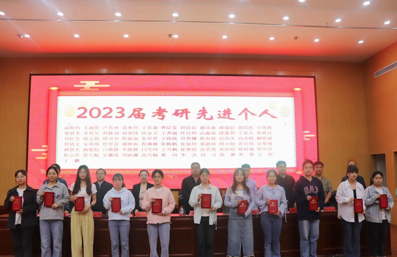 大会在庄严肃穆的国歌声中拉开帷幕。学院党委书记陈贯安宣读学院2023届优秀毕业生、优秀考研指导教师以及学生工作先进个人的表彰文件。在激昂欢快的音乐中,与会领导依次为“考研先进个人”、“就业先进个人”、“优秀毕业生”、“优秀考研指导教师”及“学生工作先进个人”颁奖,并与他们合影留念,共同见证这一难忘时刻。
