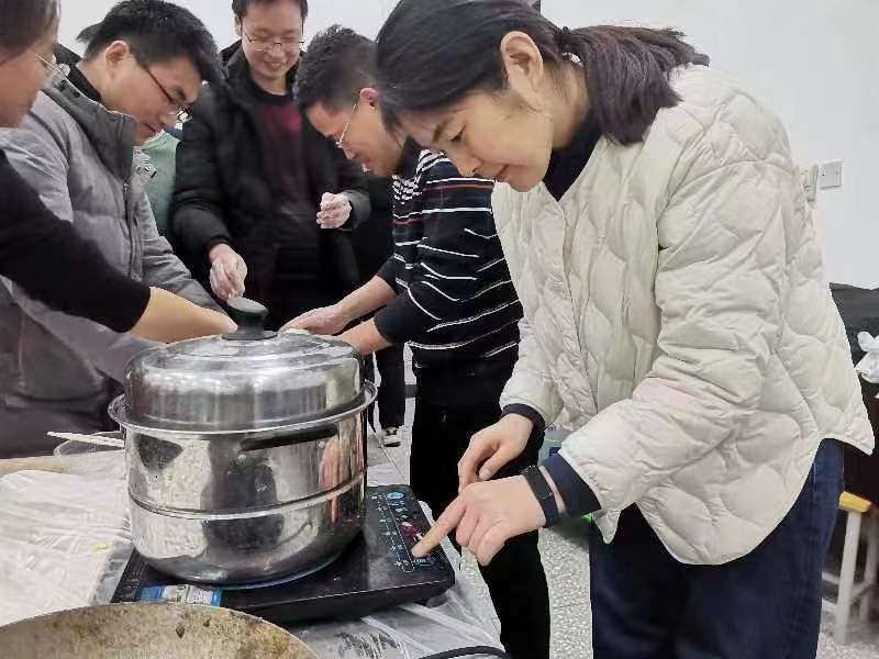 和面、调馅、擀面皮,师生一起包饺子。活动现场,其乐融融,大家各有分工,分头行动,在一阵“乒乒乓乓”的热闹之中,多种多样的菜肉变成了色香味俱全的馅料,一袋袋面粉被揉成光滑的面团。大家一边动手包饺子,一边谈论工作和生活,在劳动中享受冬至的温暖与放松。来自全国各地的师生,包出了各具特色的饺子,河南的元宝形状、东北的花边形状、四川的月牙形状的,引起师生们扎堆开心讨论。在热气腾腾中,一锅锅饺子煮熟出锅,师生们三五成群,开心的享受着劳动的果实。