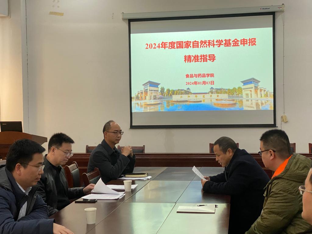 学院新闻为了做好2024年度国家自然科学基金申报工作,进一步提高学院教师国家自然科学基金申报质量和命中率,食品与药品学院于2024年1月3日下午14:30-19:30开展了2024年度国家自科基金项目申报精准指导论证会,此次论证会邀请的专家是河南科技大学李三强教授、段续教授。会议由食品与药品学院刘献明院长主持,学校科研管理处冯勋副处长、食品与药品学院副院长陈洪以及2024年拟申报国家自然科学基金的教师参加了此次论证会。