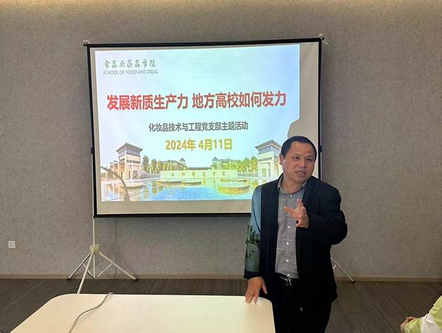 支部党员先后参观了中原美谷展厅、产业技术研究院、中试基地以及功效评价中心等,听取有关负责人关于中原美谷建设背景、特色优势、发展愿景、产业主攻方向、高端创新平台建设、运营模式等方面的详细介绍。在随后召开的座谈会上,刘献明院长为支部上了题为《发展新质生产力地方高校如何发力》的专题党课,与师生一起探讨如何不断优化学科专业结构和教育教学改革,着力构建课程内容与技术发展衔接、教学过程与生产过程对接、人才培养与产业需求融合的人才培养机制,从整体上推动人才链与创新链深度融合。