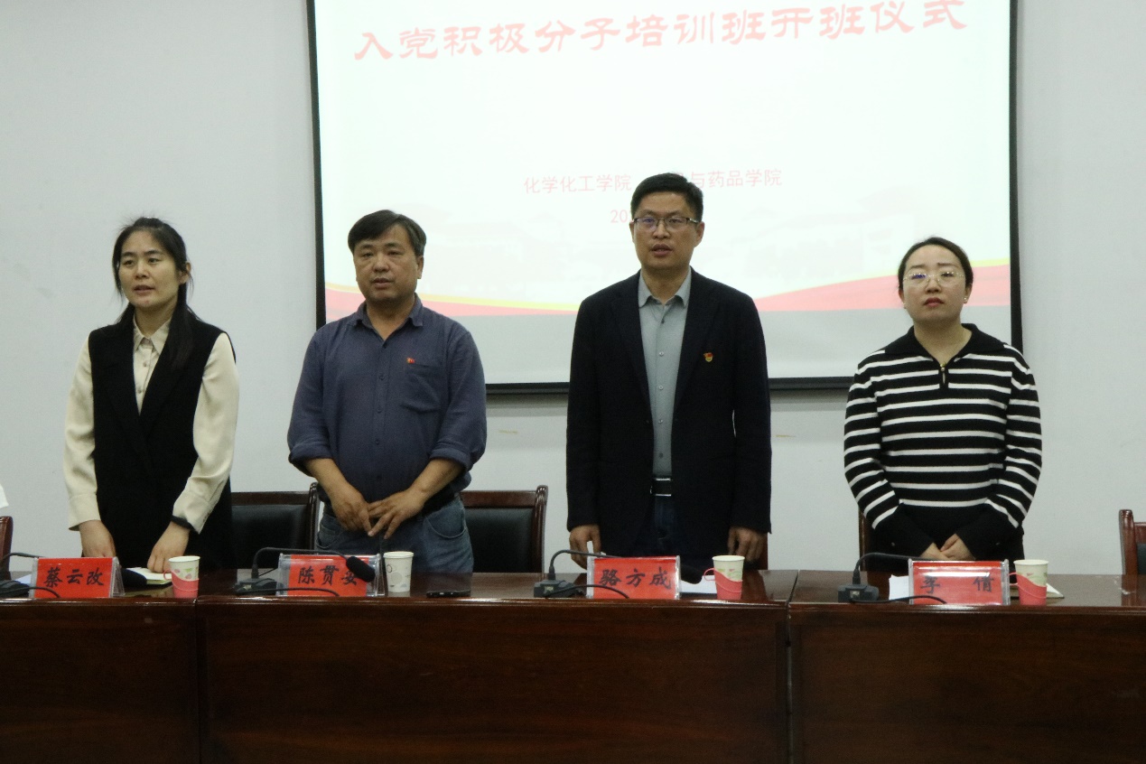 为深入学习贯彻习近平新时代中国特色社会主义思想,落实新时代党员教育和发展工作,4月9日晚,食品与药品学院与化学化工学院于化学楼215会议室开展入党积极分子培训开班仪式暨国家安全教育专题党课,食品与药品学院党委书记陈贯安、化学化工学院党委书记骆方成、化学化工学院党委副书记李倩、食品与药品学院党委副书记蔡云改出席此次活动,全体入党积极分子参加培训。