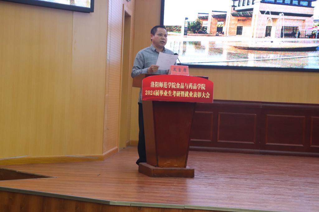 院长刘献明教授发表了热情洋溢的致辞。刘院长从毕业生人数、考研升学率、就业形势等方面进行考研数据剖析,为同学们详细介绍了近年来学校学生人数的报考、录取情况,并鼓励2025届的同学们能够从优秀的学长身上汲取奋进的力量,坚定自己内心的信念,主动学习他们的备考态度、知识积累、学习方法、考研渠道等成功经验,做一名有实力、有素养、有自信的食药学子。