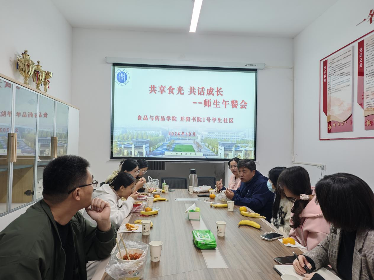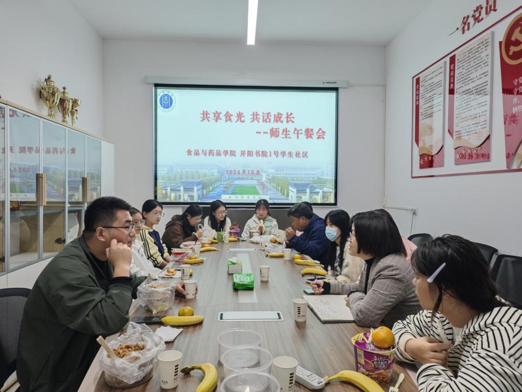 为深入倾听学生心声,加强师生间的沟通与交流,促进双院协同工作的开展,10月31日,食品与药品学院携手开阳书院1号学生社区组织开展了“导师进书院”系列活动之“成长·对话”师生午餐会。党委书记陈贯安、党委副书记刘杰、学业导师陈冲冲、育人导师孟铜宁及部分2024级新生宿舍长参加本次活动。