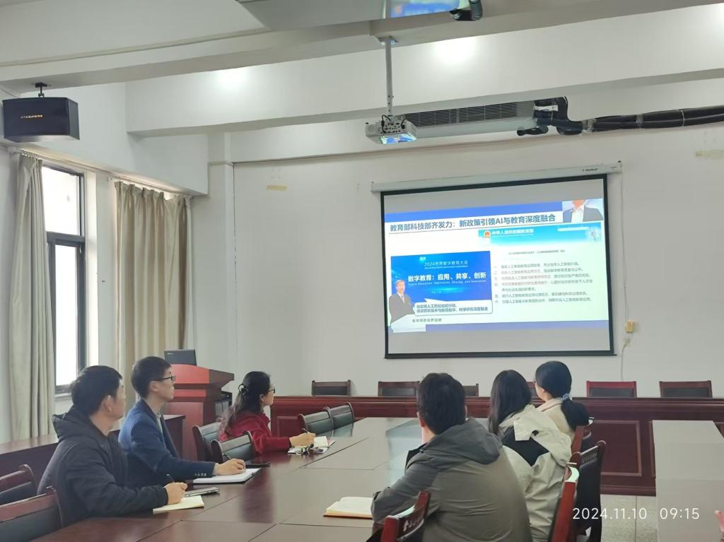 会上,押辉远副院长首先指出,高校教师作为培养新时代人才的重要力量,其数字化教学素养的提升以及数智化教学技术的实践应用对于推动教育现代化、提升教学质量具有至关重要的意义。随后,全体教师参加了由华教国培(北京)教育学研究院主办的“聚焦数智技术 赋能教学改革”线上专题培训。培训分为三个部分,分别由三位知名专家主讲,北京大学的孙华教授以《在数智时代重塑高等教育、推动教师发展》为题,分析了AI工具在教育教学中的作用;上海交通大学的郭政教授以《 A1+高等教育背景下课程教学改革案例分享》为题,分享了如何运用数字化教学工具辅助完成教师日常教学与科研工作;华中师范大学的杨九民教授以《人工智能赋能高校课程的教与学》为题,阐述了人工智能赋能课程教与学实践的要求。
