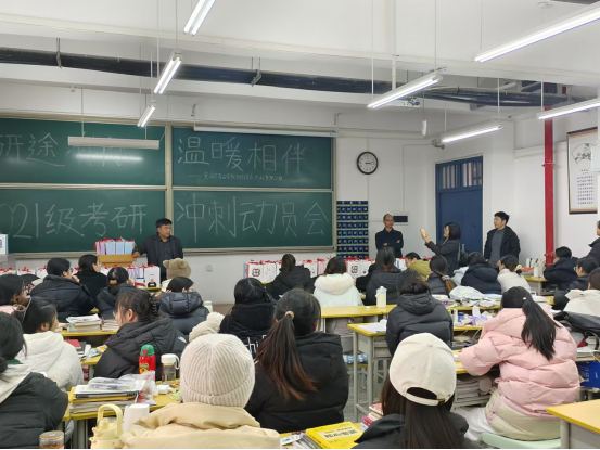 学院党委书记陈贯安代表学院向考研学子们表达了最真挚的祝福,并从统筹复习、劳逸结合、心态调整三个方面为同学们提供了宝贵的建议。其他领导老师也与考研学子们亲切交谈,鼓励同学们合理规划时间和进度,做到劳逸结合,保持平稳的心态,以饱满的精神状态迎接最后的考试,全力以赴地完成考研战场最后的“一公里”。