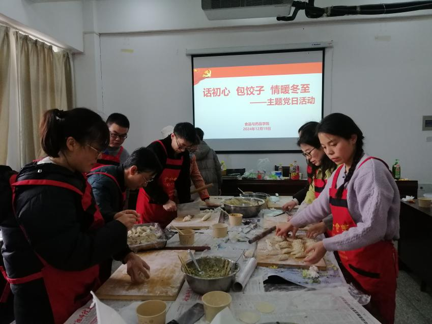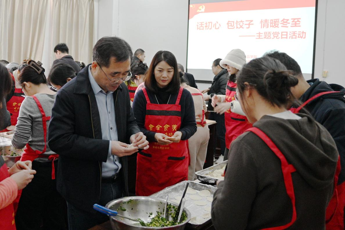 学院新闻为弘扬民俗文化,传承中华美德,增强各党支部的凝聚力和向心力,12月19日上午,学院食品营养与健康、制药工程及化妆品技术与工程党支部于A16-502党建活动室联合开展“话初心 包饺子 情暖冬至”主题党日活动。学校副校长马录芳与各支部党员同志聚在一起,共话传统文化,喜迎冬至到来。