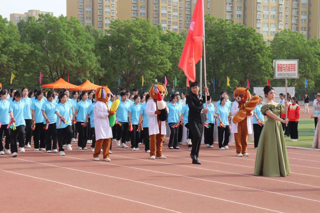 4月17日上午8:30,在主持人的解说中我校2025年春季田径运动会开幕式正式开始。晨光倾泻的绿茵场上,激昂的音乐响彻全场,在此次开幕式中,我院方阵的同学们身着统一具有代表的院服、迈着整齐的步伐和自信的笑容闪亮登场,通过精心编排的表演,巧妙融合了我院的文化特色与精神内涵,展现了团结向上、多才多艺的青春风采,赢得了在场观众的阵阵掌声,为运动会增添了亮丽的色彩。