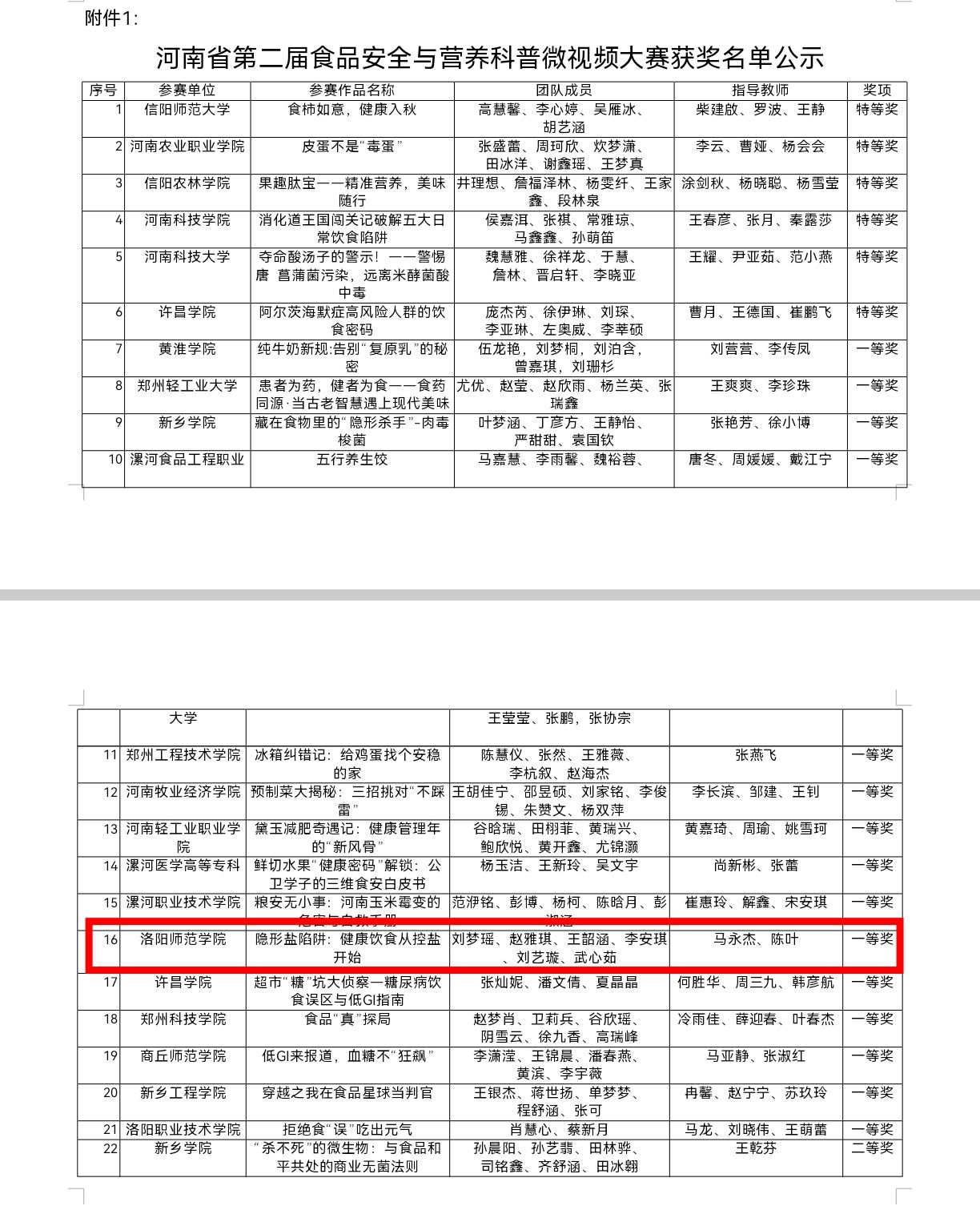 学院新闻2025年11月22日至23日,由河南省食品科学技术学会主办,许昌学院、许昌市科学技术协会承办的“河南省第二届大学生食品安全与营养科普微视频大赛”决赛线上举行。食品与药品学院推选参赛的两项作品获得评委一致好评,最终取得一等奖和二等奖的优异成绩。