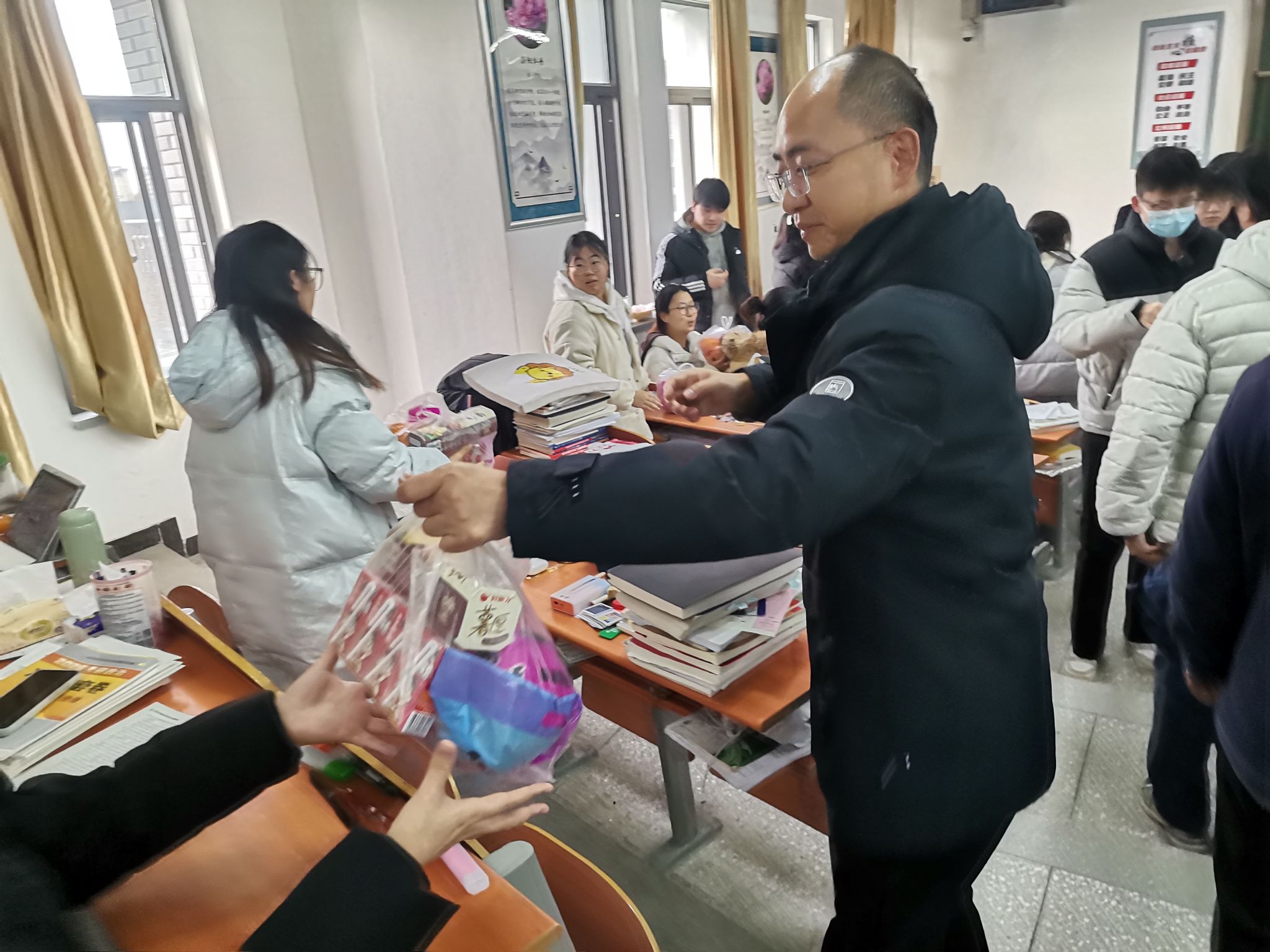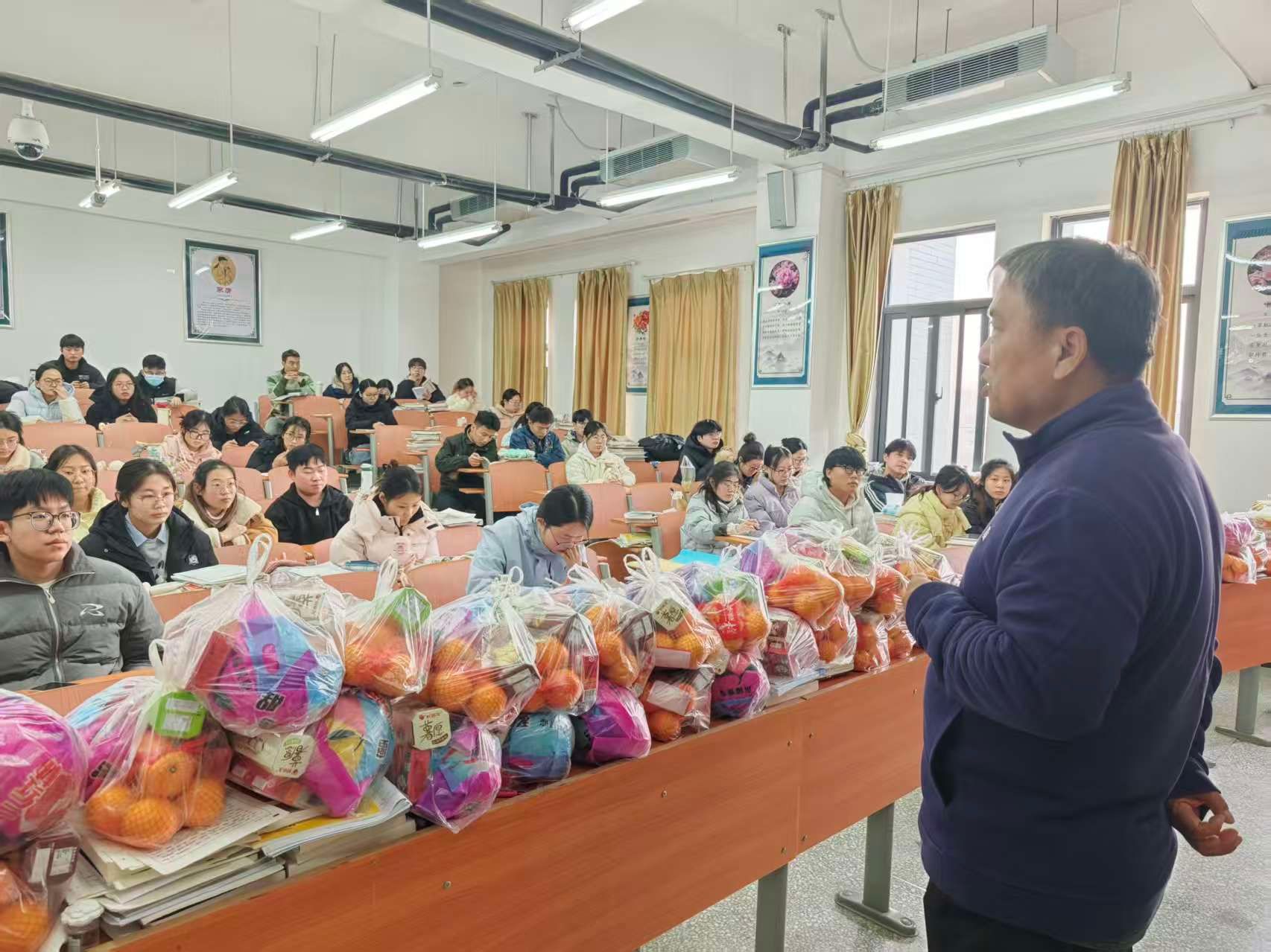活动最后,学院领导班子成员为同学们发放精心准备的“考研加油包”,内含牛奶、橙子、柚子等寓意丰富的礼物,祝愿考研学子能够心想事“橙”、金榜题名。