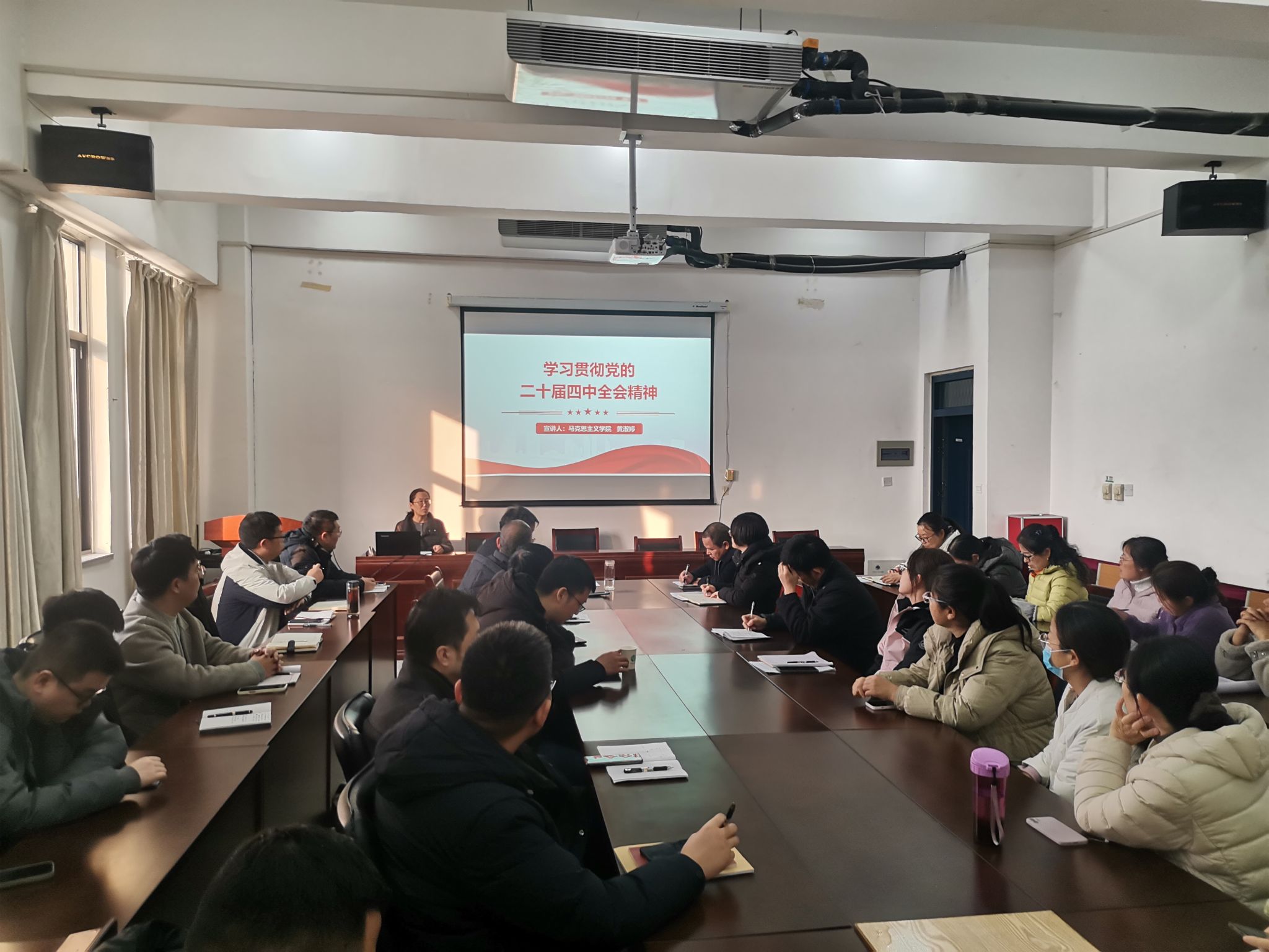 学院新闻12 月 11 日下午,食品与药品学院在 A16-502 会议室召开学习贯彻党的二十届四中全会精神宣讲会,邀请学校理论宣讲团成员、马克思主义学院黄淑婷教授担任主讲人。学院党委书记陈贯安主持会议,全体教职工参加。