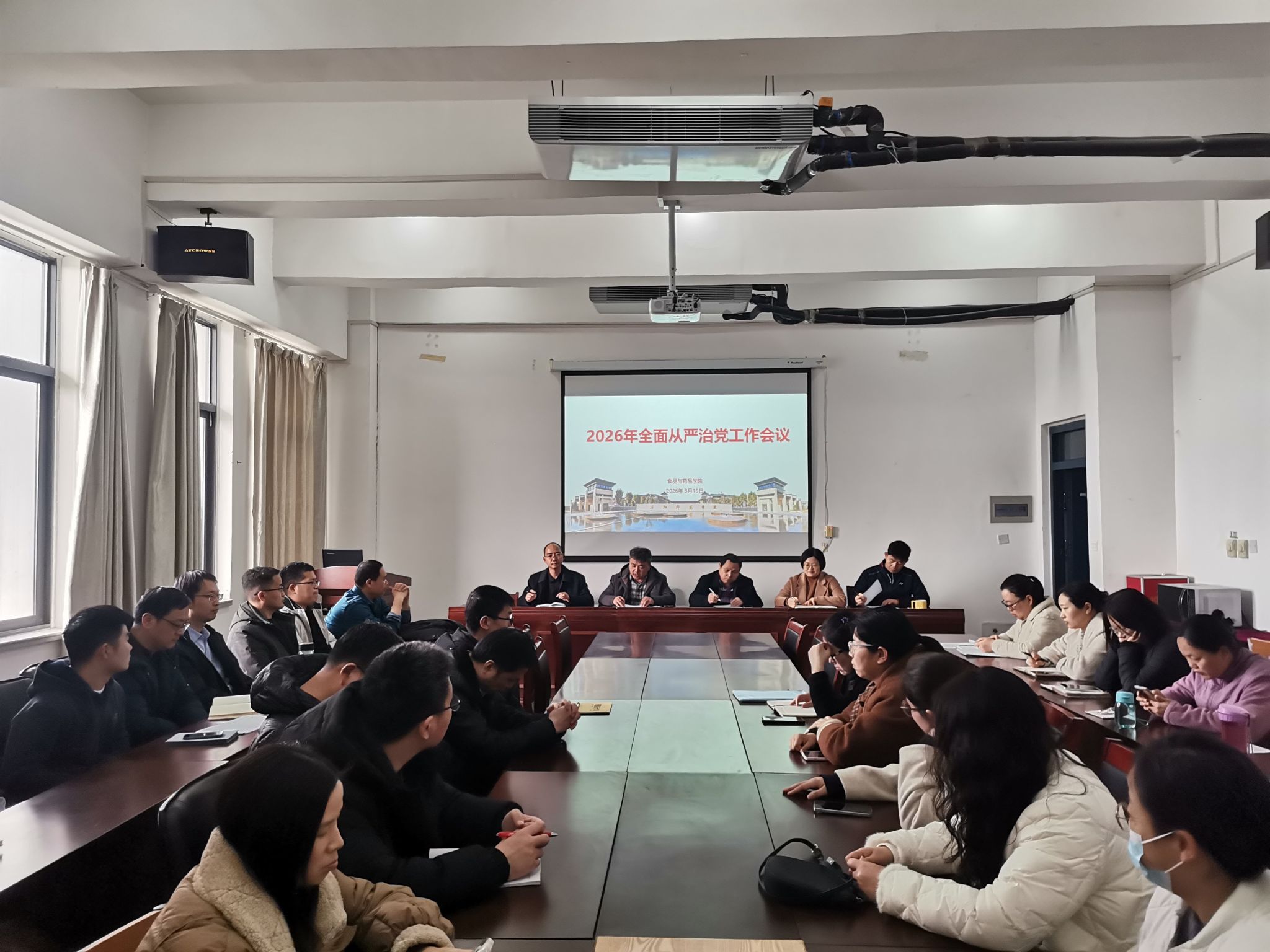 学院新闻3月19日下午,食品与药品学院在A16-502会议室召开2026年全面从严治党工作会议。学院全体教职工参会,党委书记陈贯安主持会议并讲话。