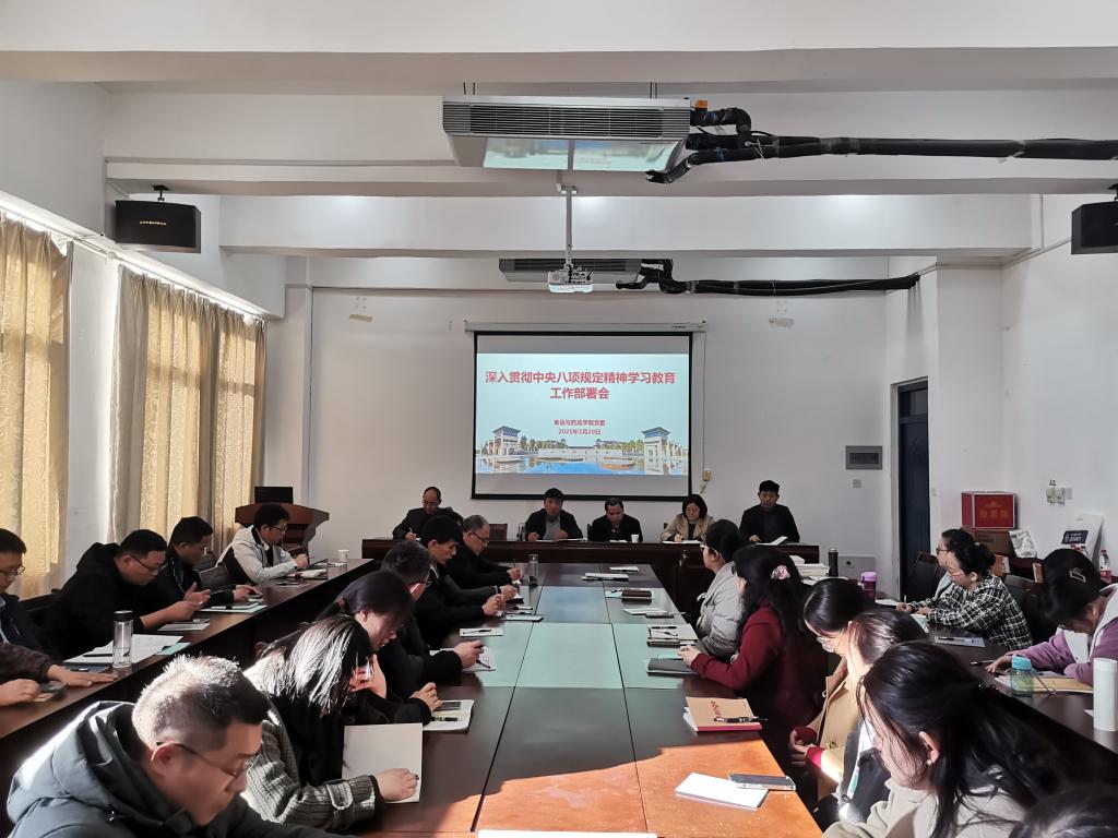 会上传达学习了学校党委部署深入贯彻中央八项规定精神学习教育的会议精神和工作要求。
