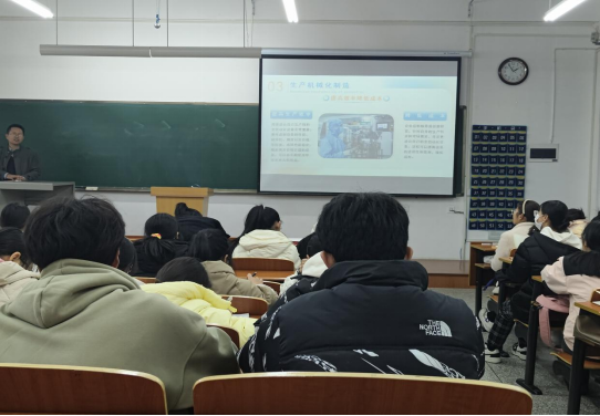 周德刚先生详细地向同学们分析了兽药行业发展现状。随着近年来全球动物保健市场的快速发展,中兽药行业市场也呈现出一定的增长趋势,市场需求的不断增加,推动了动物药品市场和配套服务的快速发展,为企业的发展提供了市场机遇。同时,他还就企业生产制造、研发和销售板块需要降本增效等方面展开阐述。他提到,生产管理数字化、生产机械化制造等,都为企业提高了效率、降低了生产成本。