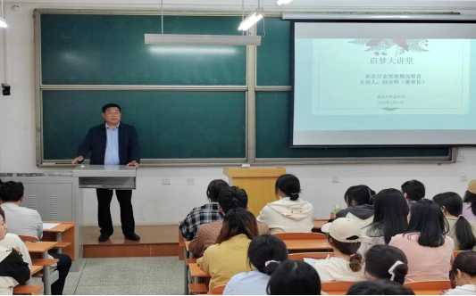 招生就业2024年4月11日下午,由校就业指导与服务中心主办,食品与药品学院承办的启梦大讲堂系列讲座之“食品行业发展概况报告”在我校逸夫楼G4-313举行。本次讲座由洛阳市名珍食品有限公司董事长赵合明担任主讲师,食品与药品学院副院长押辉远、食品科学与工程党支部书记马永杰、就业创业工作办公室副主任李静玉、学院卓越工程师能力提升班食品科学与工程专业学生、2023级食品科学与工程专业等100余名学生参加本次讲座。