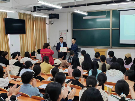 在讲座中,赵董事长讲述了他在食品行业中面临的机遇与挑战,以及如何通过不断创新和努力实现企业的转型和发展。他指出,随着消费者对品质的需求日益增高,食品行业正面临着巨大的变革,技术创新、产业升级、政策环境等都对行业发展产生影响。“早起的鸟儿有虫吃”赵合明董事长说,早起你就抓住了机会,他以自身艰辛创业历程勉励在座的学生要抓住专业学习机会。同时,现场的学生们积极提问,赵董事长耐心解答,并给予学生极具价值的建议和指导。最后,食品与药品学院副院长押辉远为名珍食品有限公司董事长赵合明颁发荣誉证书和聘任证书,聘任赵合明为我院食品科学与工程专业校外指导老师,并表示期待未来双方能深入合作,共同推动食品行业的发展。