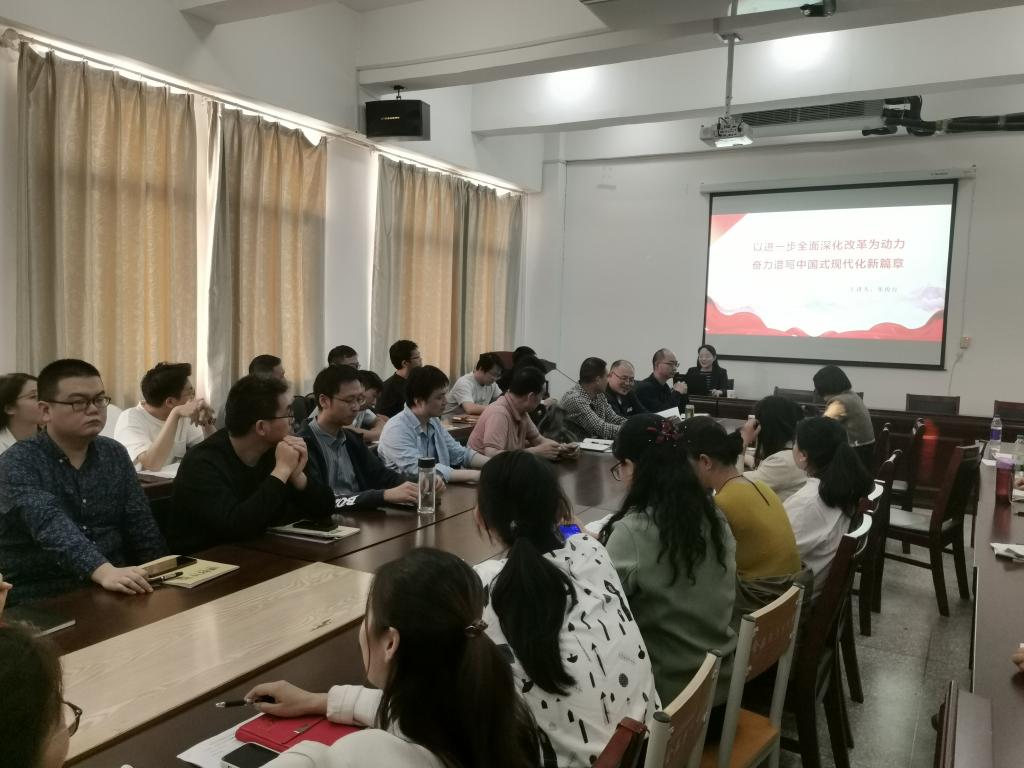 宣讲会上,张俊红副教授以《以进一步全面深化改革为动力 奋力谱写中国式现代化新篇章》为题,从为什么要进一步全面深化改革、怎样进一步全面深化改革、如何推进进一步全面深化改革三个方面,对党的二十届三中全会精神作了系统阐释和深入解读,并对抓好贯彻落实提出了思路举措。宣讲报告深入浅出、内涵丰富,具有较高的政策理论性和实践指导性。