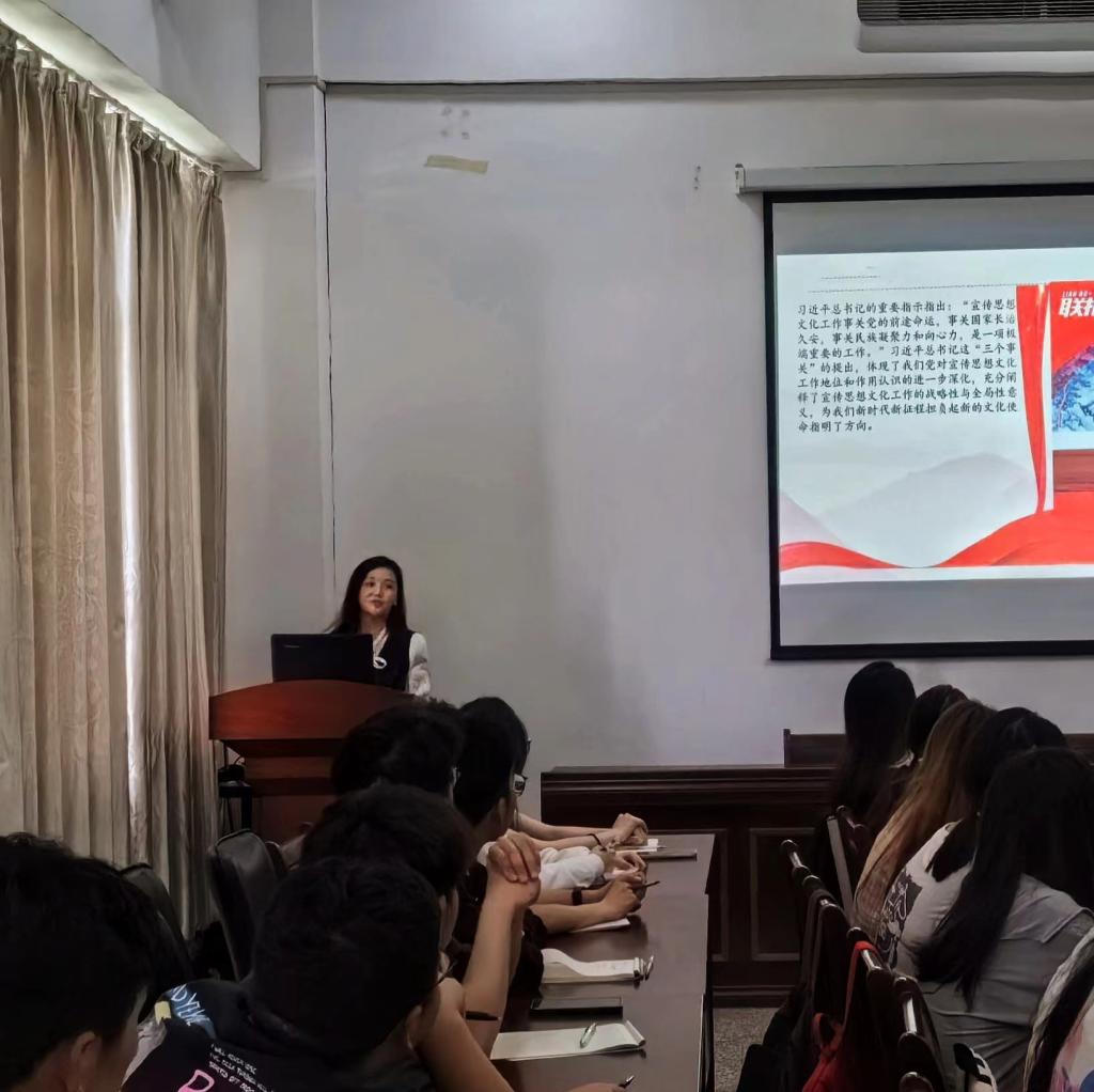 周老师首先从宣传思想文化工作的重要性讲起,要求所有团学骨干要提高政治站位,充分认识到宣传工作的重要性。周老师围绕学生宣传工作中的常见问题,如新闻稿的基本要求、六要素以及新闻图片如何采编等问题,详细讲解了新闻稿写作的方法,明晰了新闻稿写作和宣传工作应注意的问题。